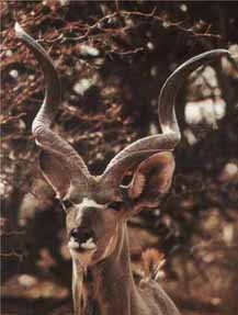 Glück im Unglück, ich war so gut wie fertig und wollte die Hose gerade wieder hochziehen, als ich hinter mir einige Äste brechen hörte. Als ich zum Baum gegangen bin, war mit Sicherheit nichts in der Nähe. Ja denkste, da war er der Kudubock. Die Kudus sind in unserer Gegend die grössten Antilopen und die Böcke erreichen die ungefähre Grösse eines Pferdes.