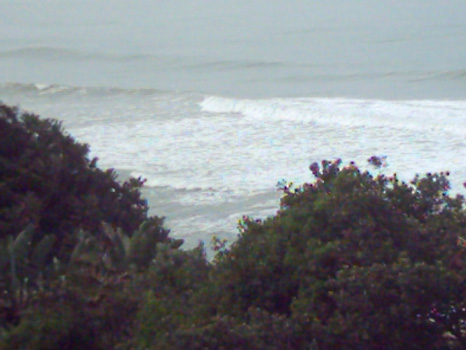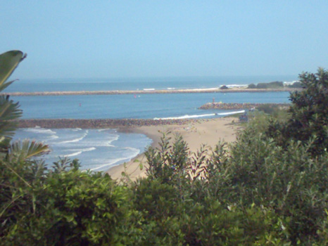 Der bewachte Badestrand von Richards Bay. Im Hintergrund die Hafeneinfahrt.