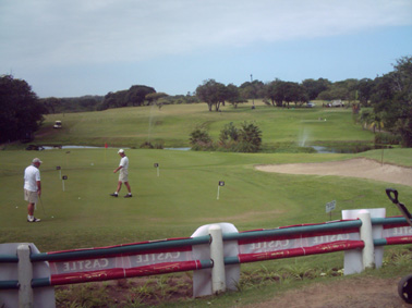 Teil des Golfplatzes. Golf ist eine Art von Nationalsport in Südafrika. Dieser hier in Richards Bay, dürfte allerdings in sofern einmalig sein, dass man hier schon einmal darauf gefasst sein muss, einem Krokodil oder Flusspferd zu begegnen.