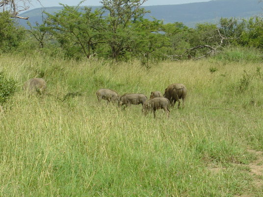 Warzenschweinfamilie beim grasen und ignorieren.